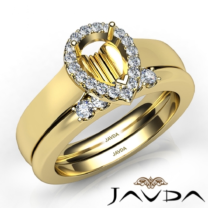 U Prong Diamond Engagement Semi Mount Ring Pear Bridal Set 18k Gold (0.43Ct. tw.)