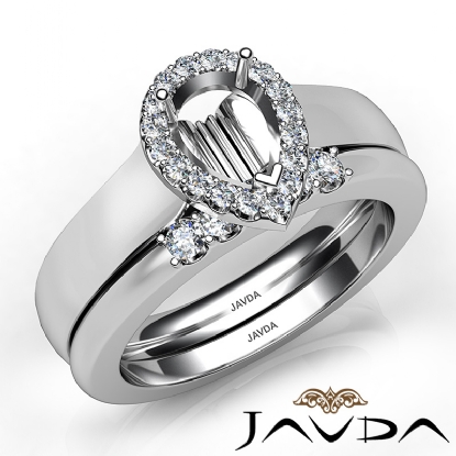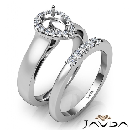U Prong Diamond Engagement Semi Mount Ring Pear Bridal Set Platinum (0.43Ct. tw.)