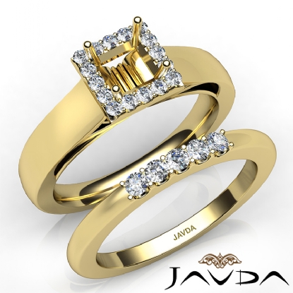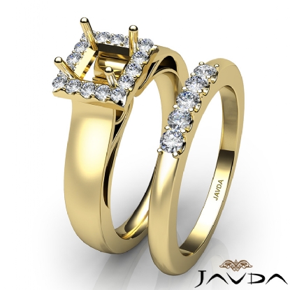 This Magnificent engagement ring and matching band feature an princess semi mount in Halo U Cut prong setting diamonds on shank also. This bridal set is crafted in 18k Gold Yellow. (0.42Ct. tw.)