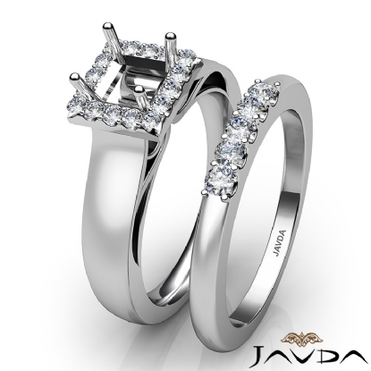 This Magnificent engagement ring and matching band feature an princess semi mount in Halo U Cut prong setting diamonds on shank also. This bridal set is crafted in Platinum 950. (0.42Ct. tw.)