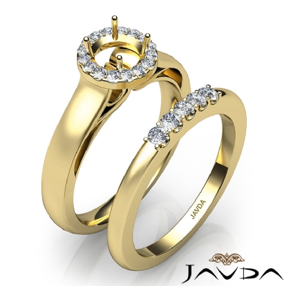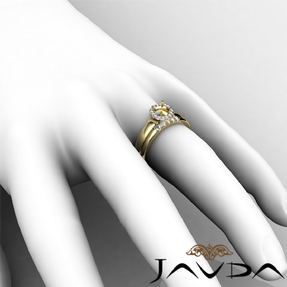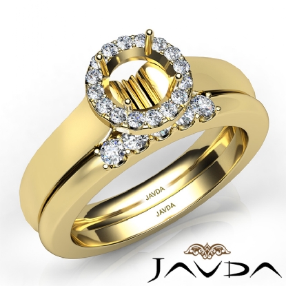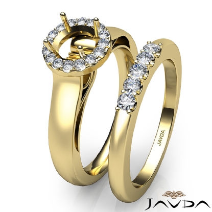 This Magnificent engagement ring and matching band feature an round semi mount in Halo U Cut prong setting diamonds on shank also. This bridal set is crafted in 18k Gold Yellow. (0.4Ct. tw.)