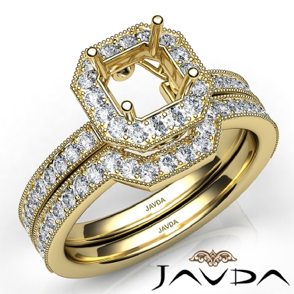 Pave Diamond Engagement Ring Asscher Bridal Set 14k Gold Semi Mount (1Ct. tw.)