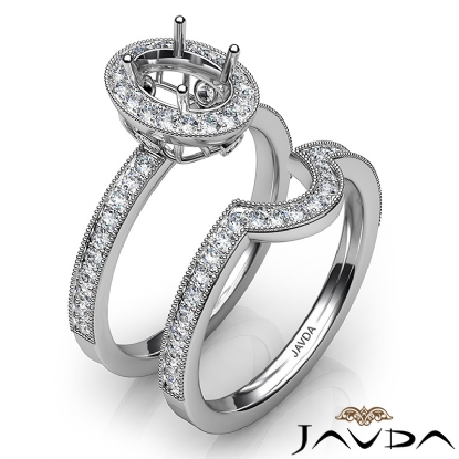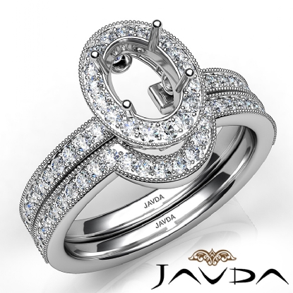 Diamond Engagement Ring Oval Halo Pave Bridal Set 18k W Gold Semi Mount (1Ct. tw.)