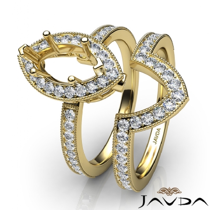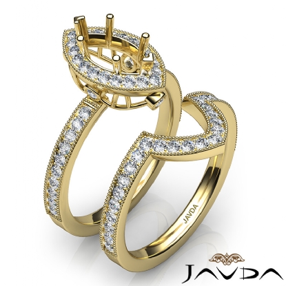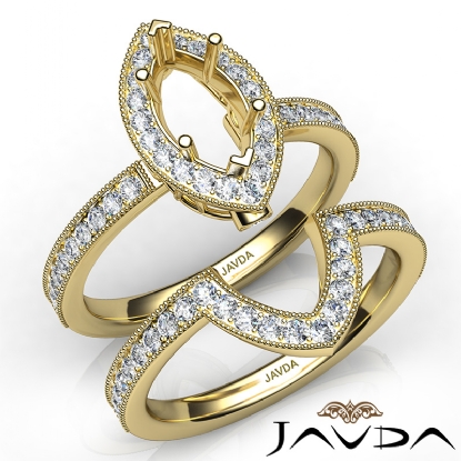 Pave Diamond Engagement Ring Marquise Bridal Set 18k Gold Semi Mount (1Ct. tw.)