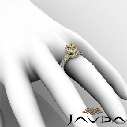 Halo Pave Diamond Engagement Ring Round Bridal Set 18k Gold Semi Mount (1Ct. tw.)