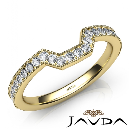 Round Pave Diamond Women's Milgrain Wedding 2.6mm Band made in 14k Gold Yellow. Ideal Matching Ring for the Item # R22050A Engagement Setting. (0.5Ct. tw.)