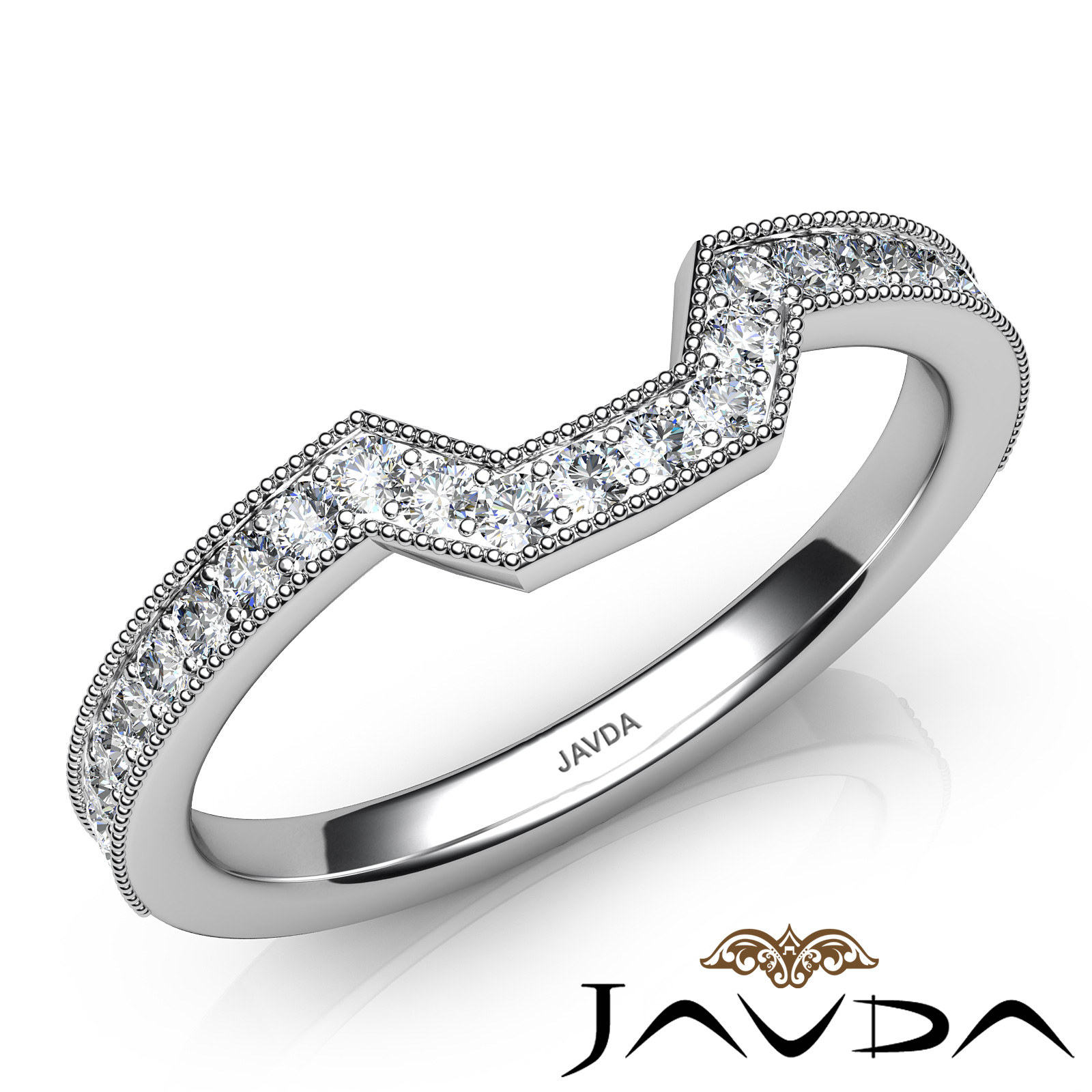 Round Pave Diamond Women's Milgrain Wedding 2.6mm Band made in Platinum 950. Ideal Matching Ring for the Item # R22050A Engagement Setting. (0.5Ct. tw.)