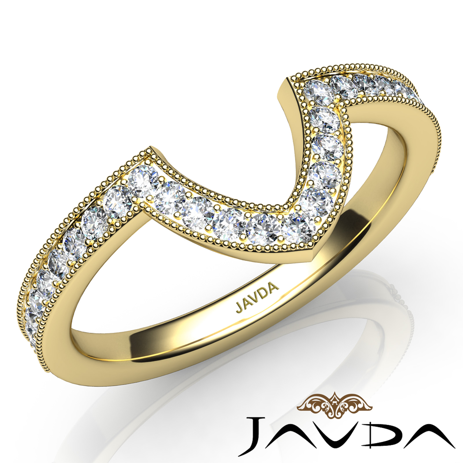 Round Pave Diamond Women's Milgrain Wedding 2.6mm Band made in 18k Gold Yellow. Ideal Matching Ring for the Item # R22050M Engagement Setting. (0.5Ct. tw.)