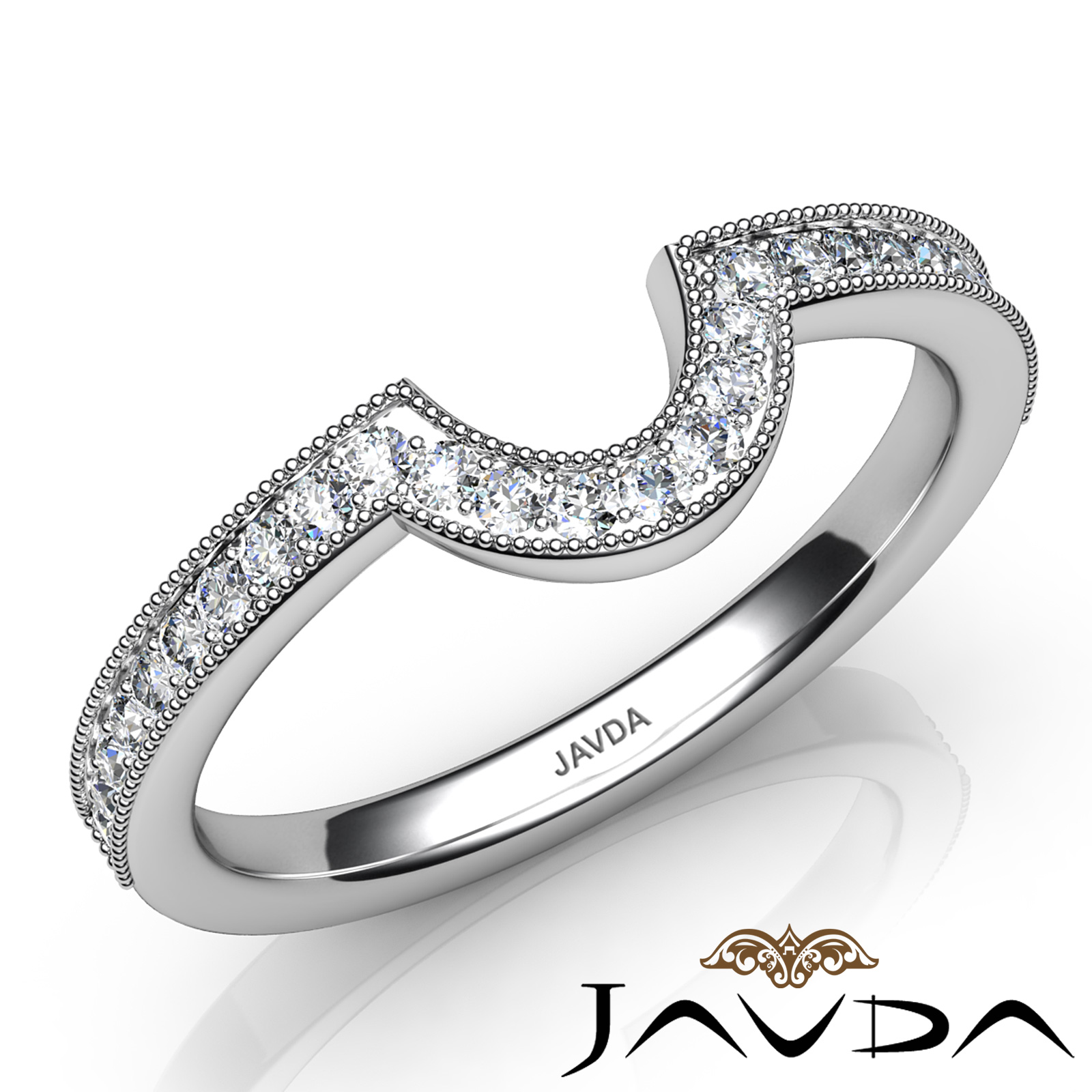 Round Pave Diamond Women's Milgrain Wedding 2.6mm Band made in Platinum 950. Ideal Matching Ring for the Item # R22050O Engagement Setting. (0.5Ct. tw.)