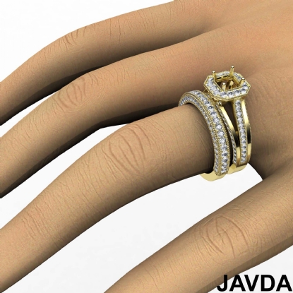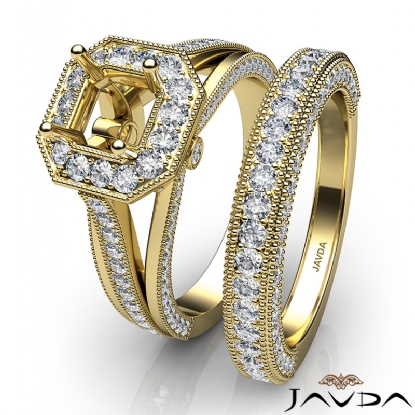 Pave Diamond Engagement Ring Bridal Sets 18k Gold Asscher Semi Mount (1.7Ct. tw.)