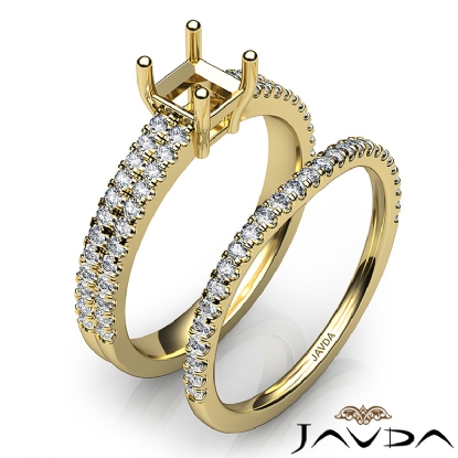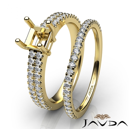 Breathtaking in design, this 14k Gold Yellow princess semi mount engagement ring comes with a matching band. It features round U Split Cut Prong set diamonds in shank. This bridal set will be the perfect choice. (0.8Ct. tw.)