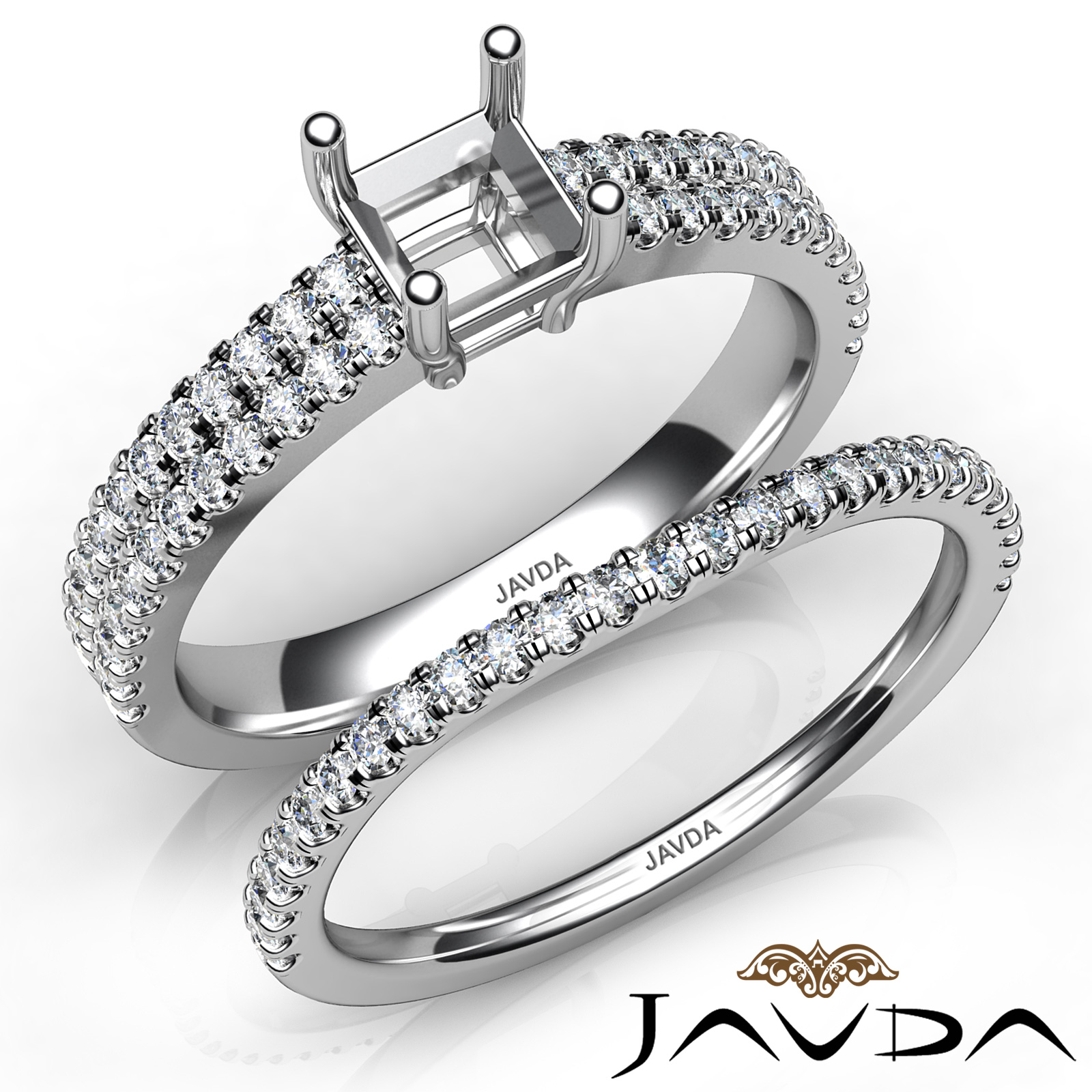Diamond Engagement Ring Princess Semi Mount U Cut Bridal Set Platinum (0.8Ct. tw.)