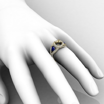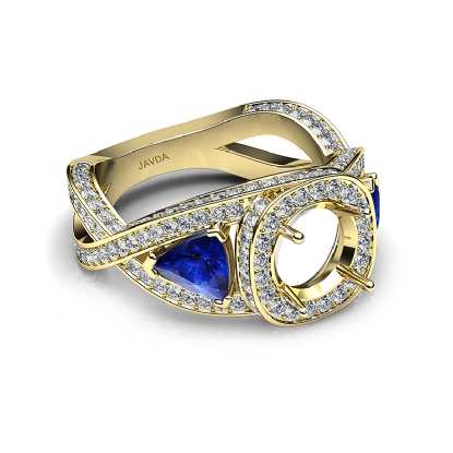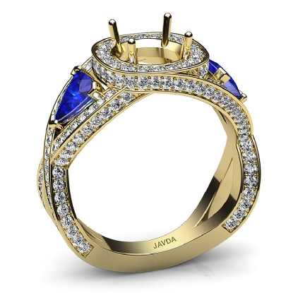 3 Stone Diamond Engagement Trillion Round Semi Mount Ring 18k Gold (1.3Ct. tw.)