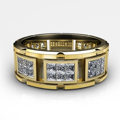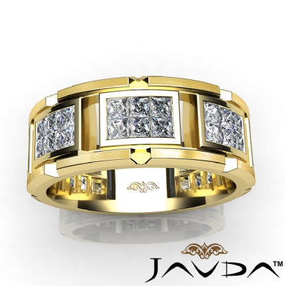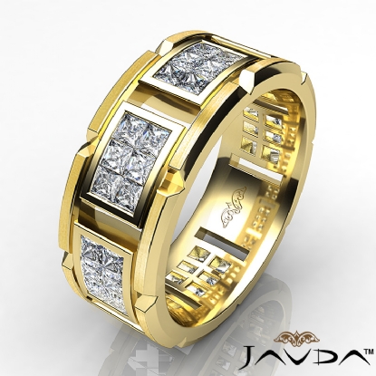 Princess invisible Setting Diamond Men's Wedding Band Eternity Matt and Polished Finished Ring crafted in 14k Gold Yellow. (2.6Ct. tw.)