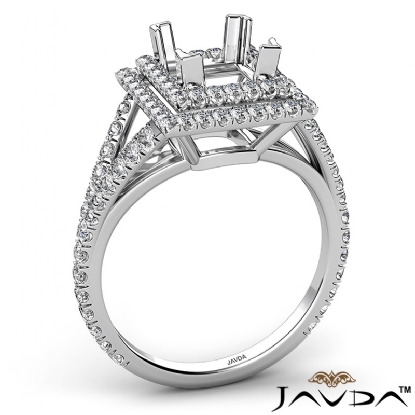 This Splendid diamond engagement ring is made in glorious 18k Gold White. This princess cut semi mount ring features . round diamonds in U Split Cut setting on double halo & on the split shank shank. It weights 5.9 grams (1.4Ct. tw.)