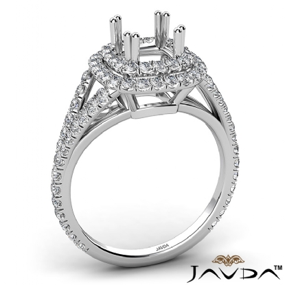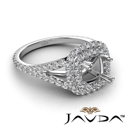 This Splendid diamond engagement ring is made in glorious Platinum 950. This cushion cut semi mount ring features . round diamonds in U Split Cut setting on double halo & on the split shank shank. It weights 5.7 grams (1.51Ct. tw.)