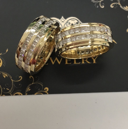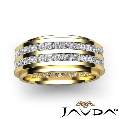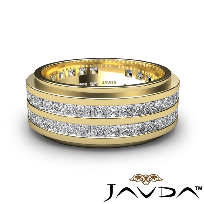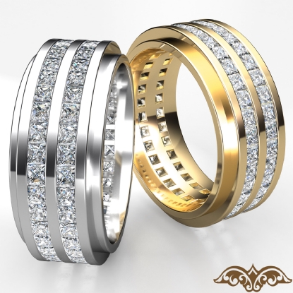 This handsome diamond eternity men's wedding band made from 18k Gold Yellow. Featuring 2 row princess diamond beautifully set in a channel setting. Available in 14k & 18k white gold, yellow gold and rose gold & platinum 950. (4Ct. tw.)