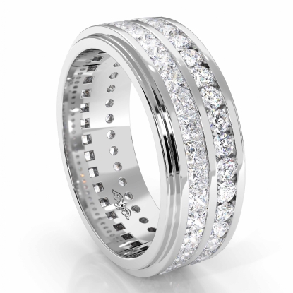 This handsome diamond eternity men's wedding band made from Platinum 950. Featuring 2 row princess diamond beautifully set in a channel setting. Available in 14k & 18k white gold, yellow gold and rose gold & platinum 950. (4Ct. tw.)