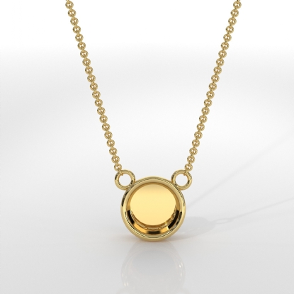 Classic solitaire pendant crafted in 14k Gold Yellow with a bezel-set round cut semi mount. Features an elegant gallery design, perfect for showcasing your center stone (not included). Includes a matching rolo link chain for a seamless, stylish finish. Pendant measures approx. 6/16" wide x 5/16" high and weighs 0.50g.