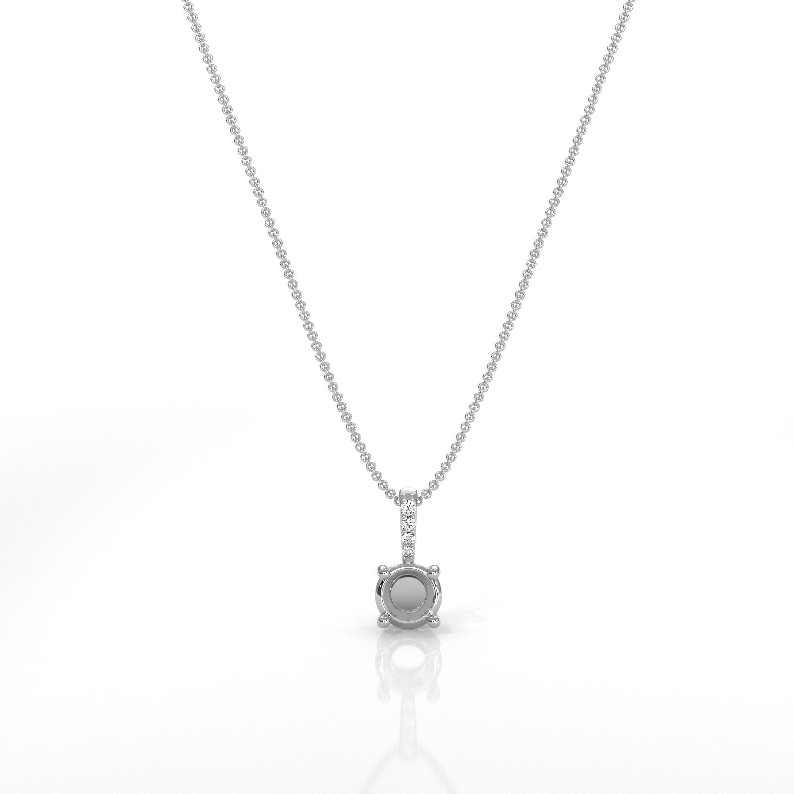 Prong Set Solitaire Round Semi Mount Diamond Bail Pendant 18k W Gold (0.03Ct. tw.)