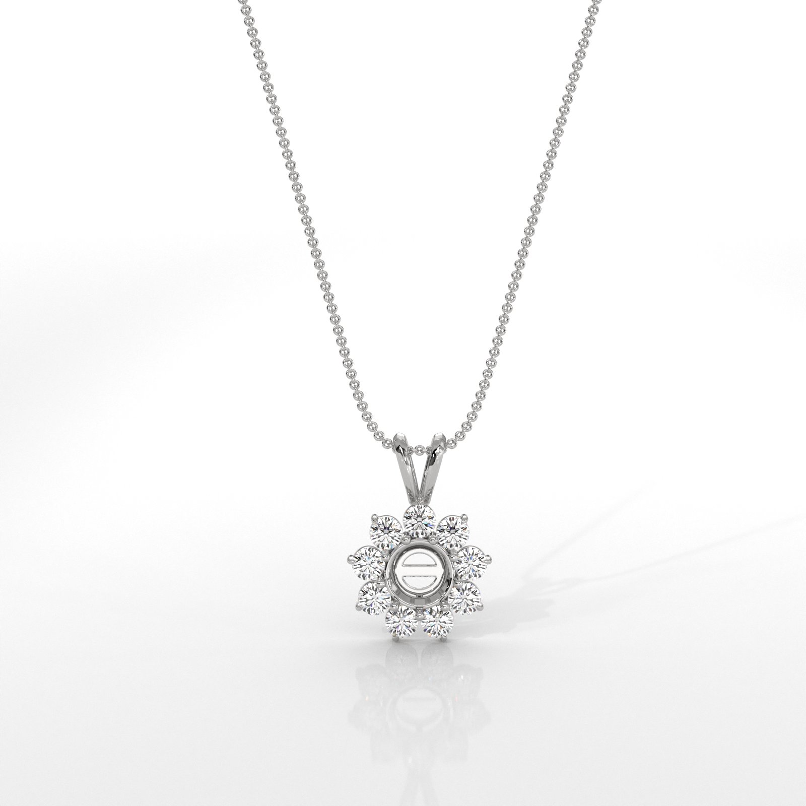 Flower Cluster Round Cut Semi Mount Double Bail Pendant in Platinum (0.44Ct. tw.)