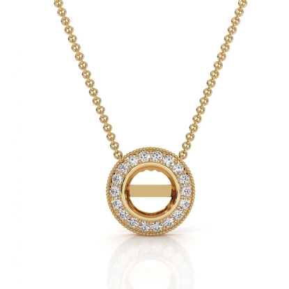 Milgrain Halo Bezel Round Cut Diamond Semi Mount Pendant 14k Gold (0.17Ct. tw.)