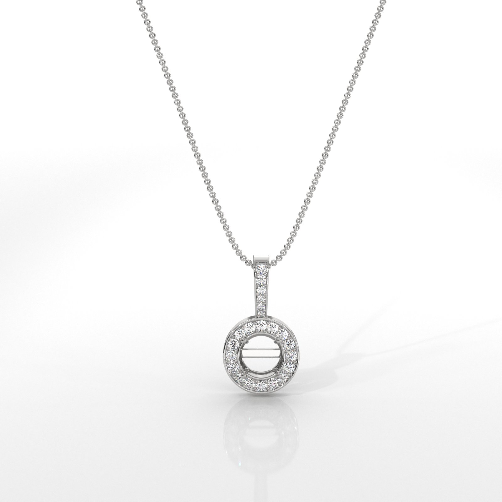 Halo Pave Round Cut Semi Mount Diamond Bail Pendant in Platinum (0.19Ct. tw.)