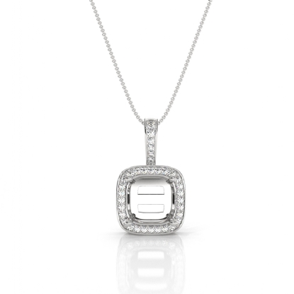 Halo Pave Round Cut Semi Mount Diamond Bail Pendant in Platinum (0.45Ct. tw.)