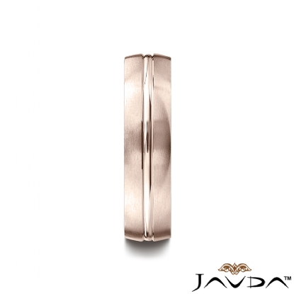 Satin Finished Center Groove Unisex Wedding Band 14k Rose Gold