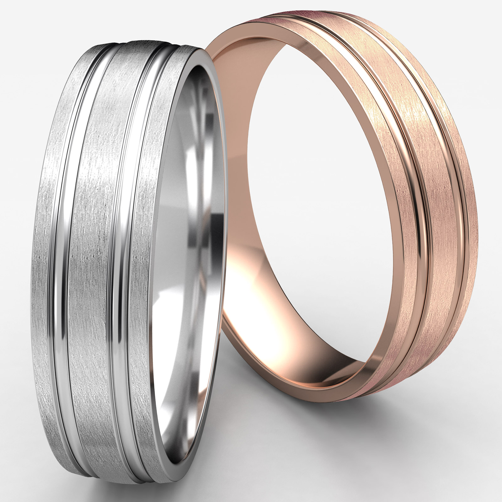 Satin Finish Parallel Grooves Men's Wedding Band 14k Rose Gold