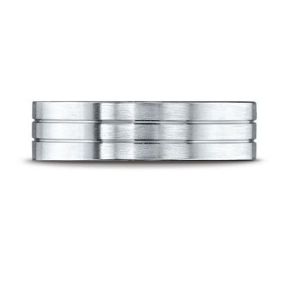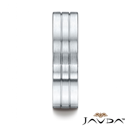 Satin Finish Parallel Grooves 14k W Gold Wedding Band Men