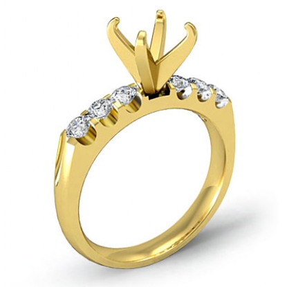 Distinctly beautiful, this 18k Gold Yellow semi mount ring features six stone prong set round diamonds along the shank. The total weight of this diamond engagement ring is . (0.31Ct. tw.)