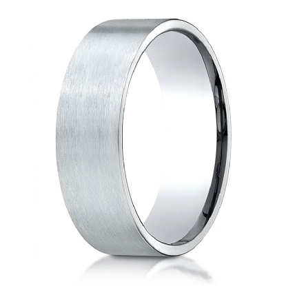 Classic flat design satin finished comfort fit men's wedding band. Made from 14k Gold White and measures 7mm wide. Quality craftsmanship makes this long lasting band a great value. The bold width and comfort fit interior creates an unique style. Available in white gold, yellow gold and rose gold.
