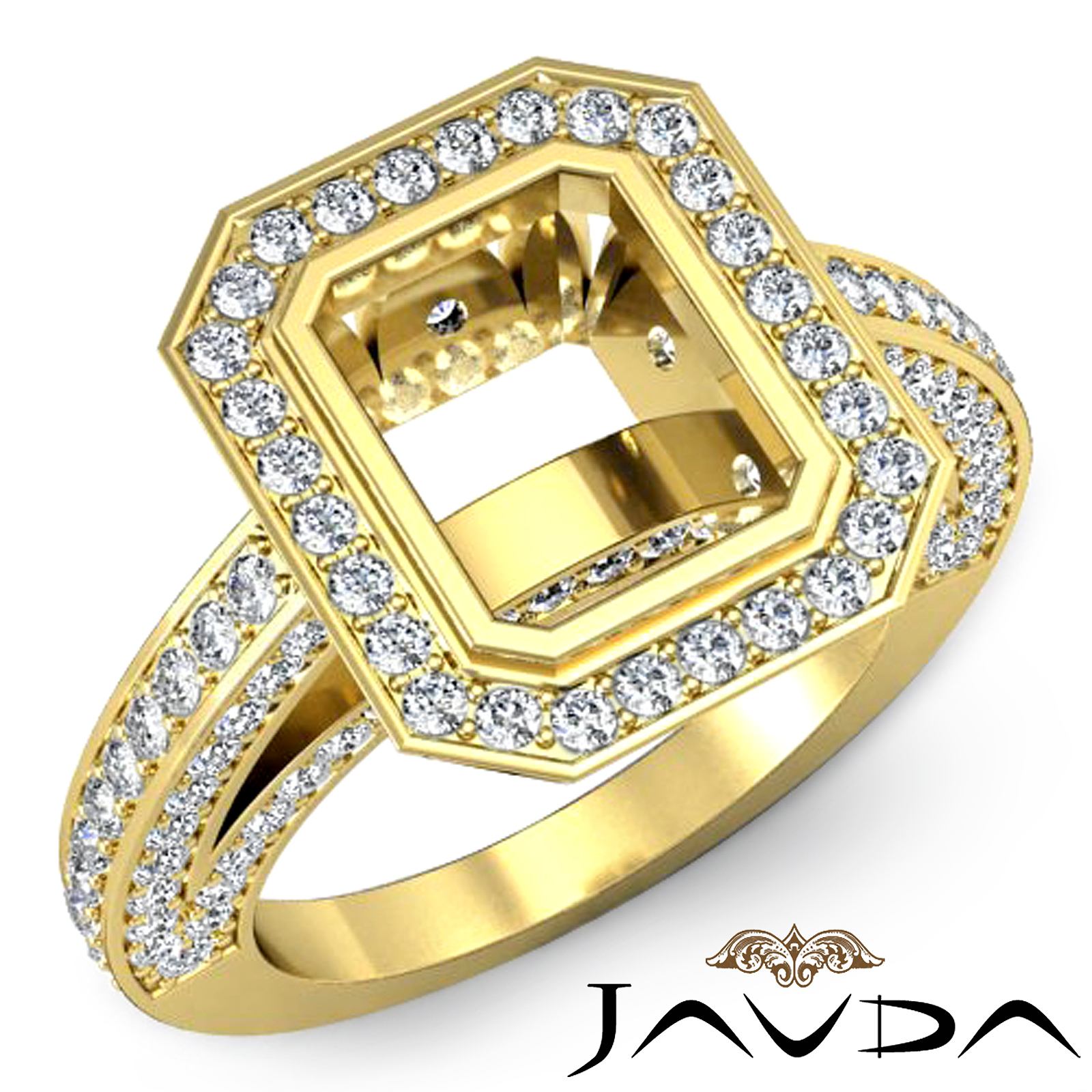 Diamond Engagement Emerald Ring 18k Gold Halo Setting Semi Mount (2.25Ct. tw.)