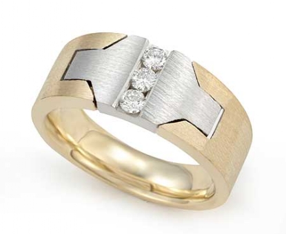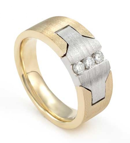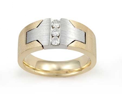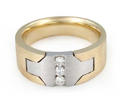 This solid comfort fit diamond ring for him is 9.20mm wide and available in 14k & 18k two tone gold, 14k & 18k white gold, yellow gold and rose gold & platinum 950.