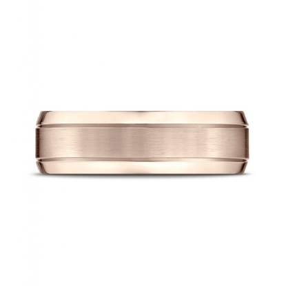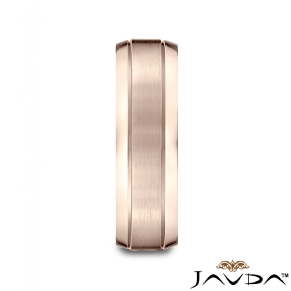 This unisex comfort fit parallel grooved carved design wedding band features satin finished center and high polish beveled edges. The perfect modern and classy combination of wedding band makes it more comfortable to wear for men's and women's, this band is made from quality 14k Rose Gold and measures 7mm wide. Available in white gold, yellow gold and rose gold.