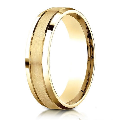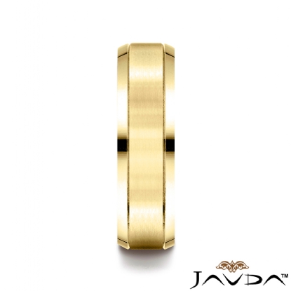 This 6mm unisex comfort fit carved design parallel grooved wedding band features satin finished center and high polish beveled edges. The perfect modern and classy combination of wedding band for men's and women's, this band is made from quality 14k Gold Yellow. Available in white gold, yellow gold and rose gold.