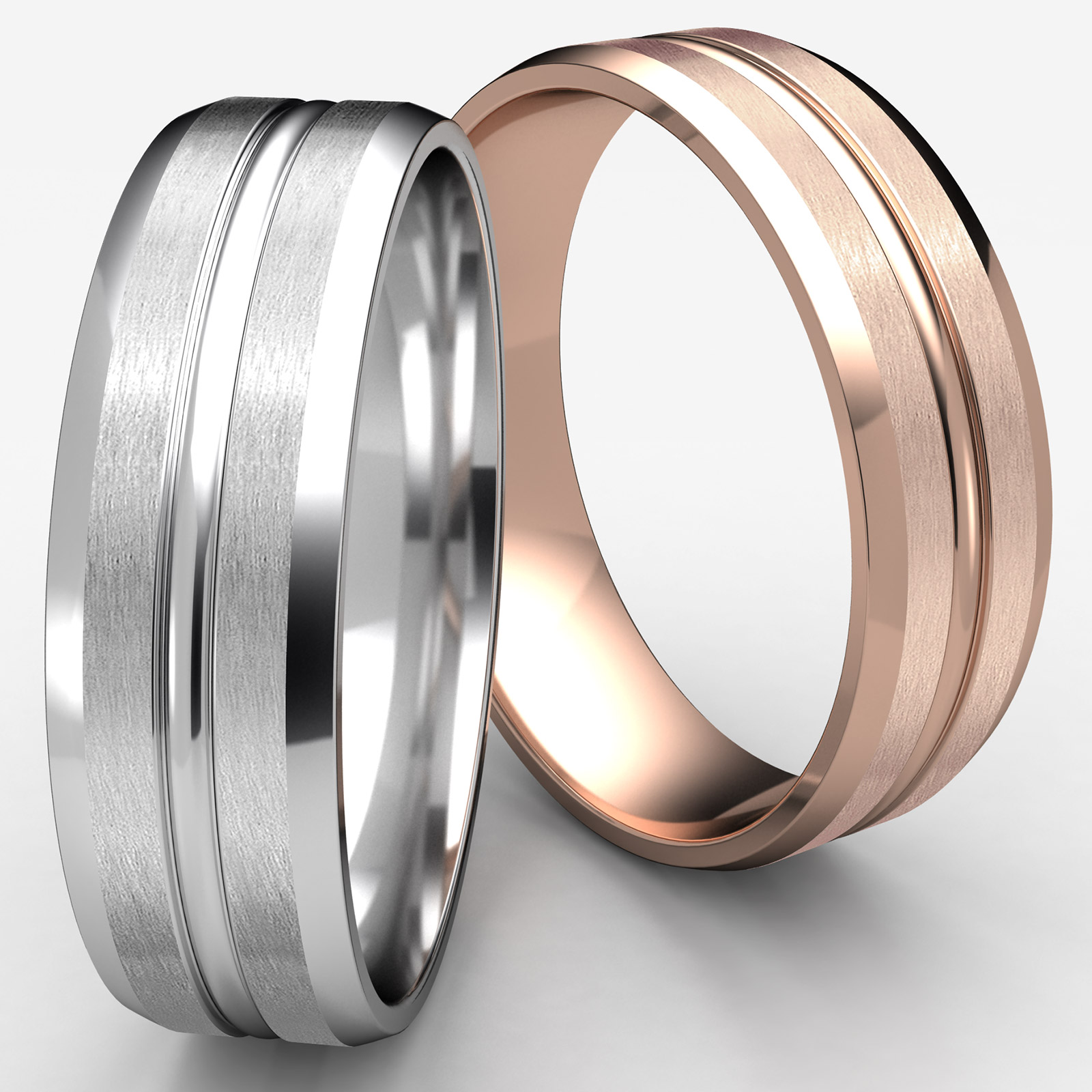 Handsome comfort fit carved design center grooved wedding band features satin finished and high polish beveled edges with center trim. This sleek and fashionable 7mm men's wedding band is comfortable and durable, this band is made from quality 14k Rose Gold. Available in white gold, yellow gold and rose gold.