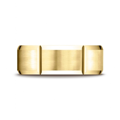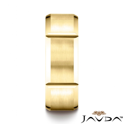 Vertical Grooved Beveled Edge 14k Gold Unisex Wedding Band