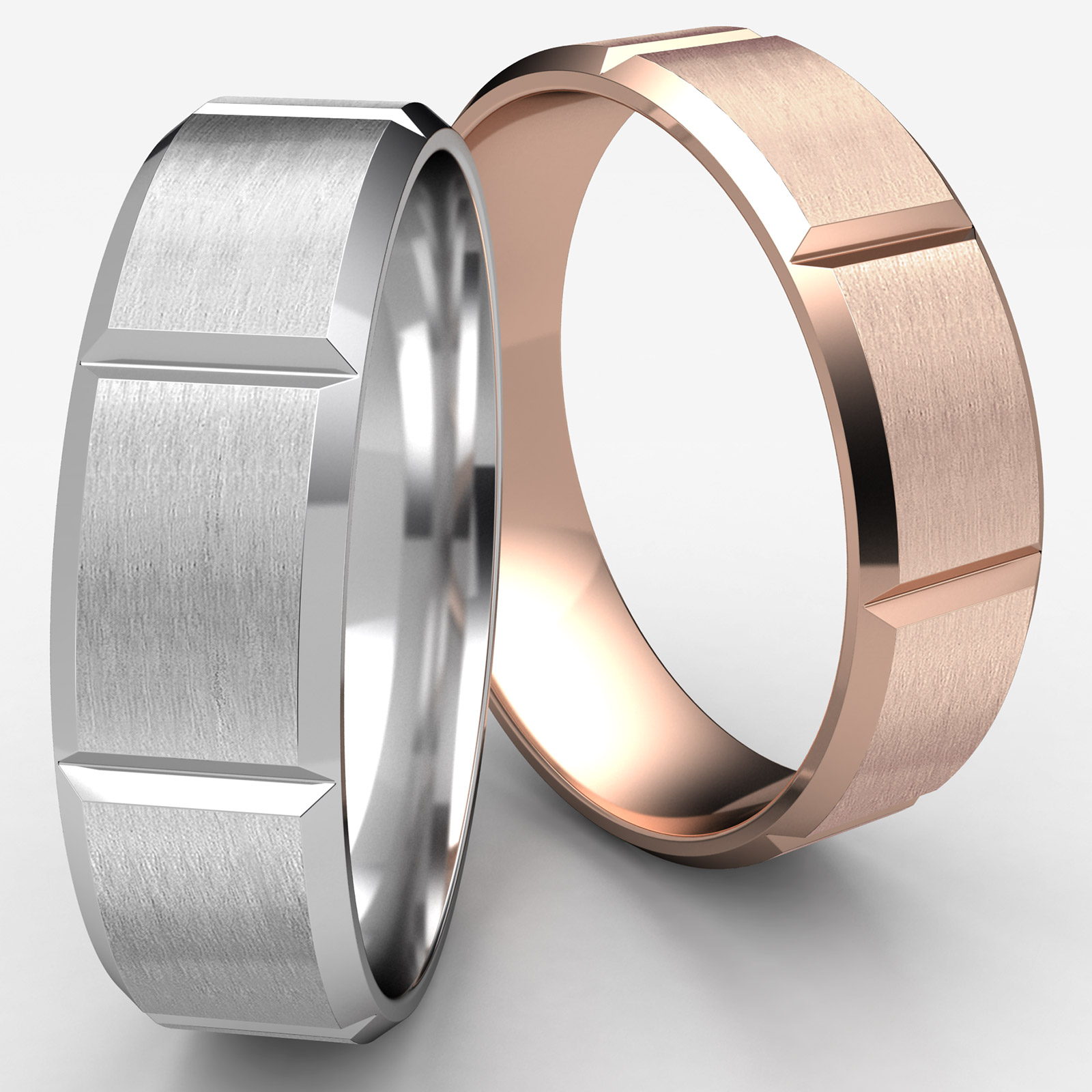 Beveled Edge Vertical Grooved Unisex Wedding Band 14k Rose Gold