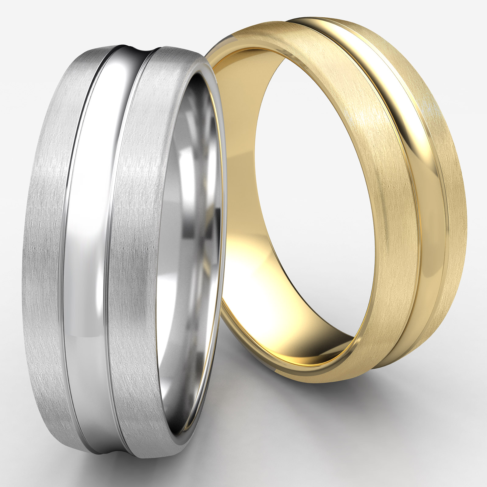 This comfort fit carved design band features a satin finish and high polished convex cut that runs through the center for a rugged and stylish look. The quality comfort fit 14k Gold Yellow men's wedding band is long lasting and perfect for everyday wear, measures 7.5mm wide. Available in white gold, yellow gold and rose gold.