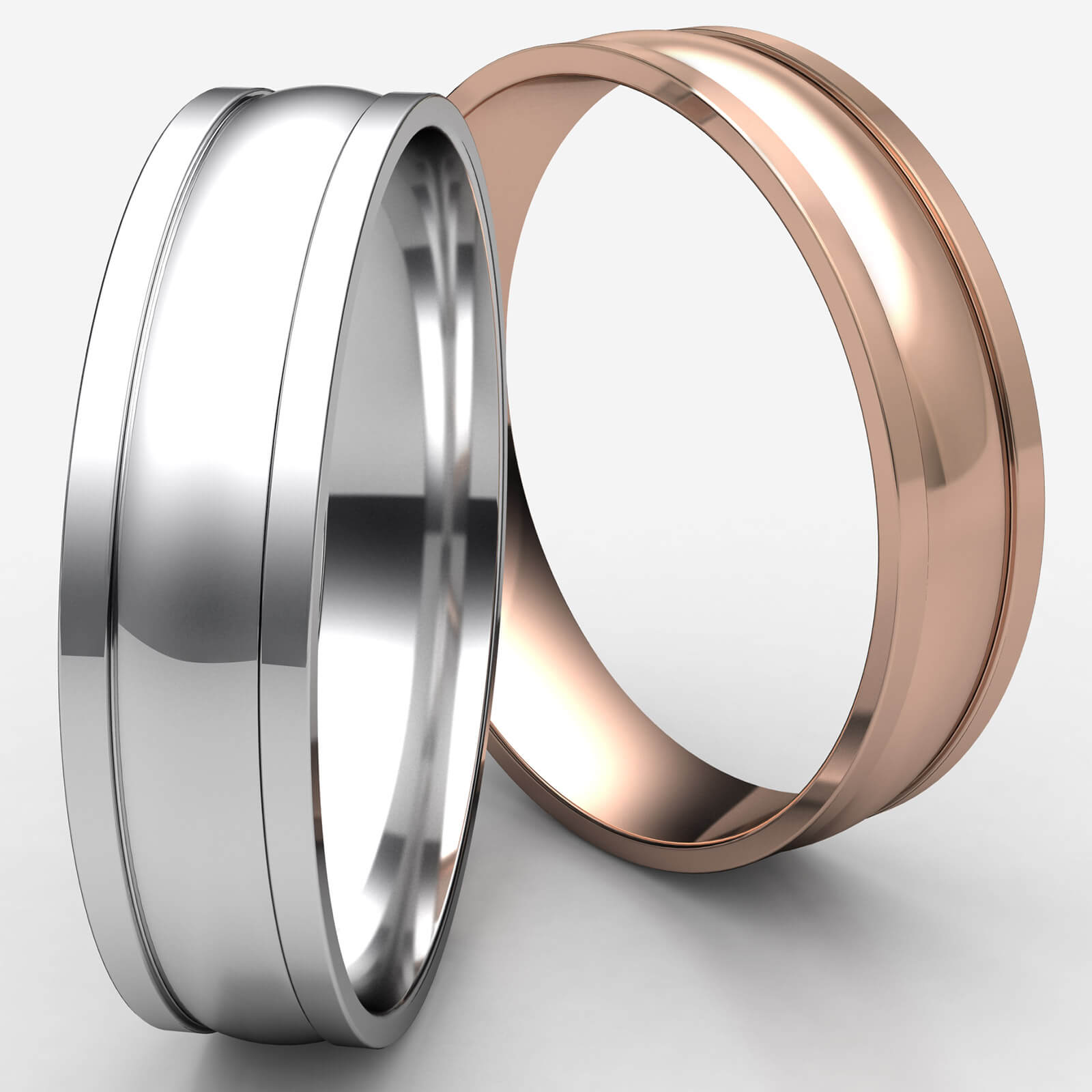 Classic satin finished comfort fit wedding band features center domed along the high polished square edge. The perfect modern and classy combination of wedding band for men's is comfortable and durable, this band is made from quality 14k Rose Gold, measures 6mm wide. Available in white gold, yellow gold and rose gold.