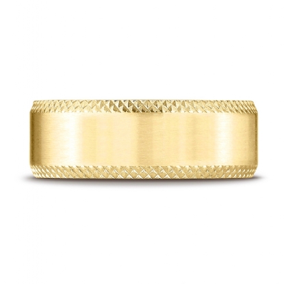 Beveled Cross Hatched Edge Unisex Wedding Band 14k Gold