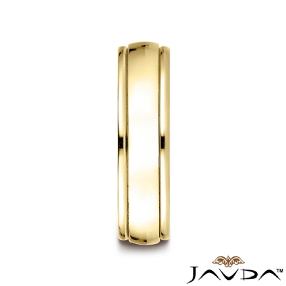 High Polished 6mm comfort fit unisex carved design wedding band features center domed style along the polished round edges. This classic wedding band is comfortable to wear for both men's and women's, made from precious 14k Gold Yellow. Available in white gold, yellow gold and rose gold.