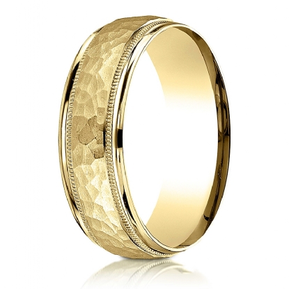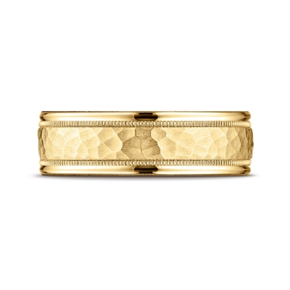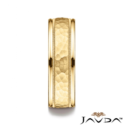 Unisex Hammered Finish Milgrain Edge 14k Gold Wedding Band