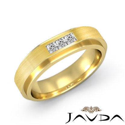 3 Stone Princess Diamond Matte Men's Half Wedding Band 18k Gold (0.35Ct. tw.)