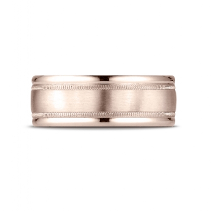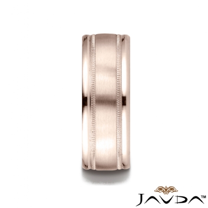 Unisex Satin Milgrain Round Edges 14k Rose Gold Wedding Band