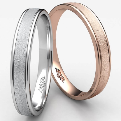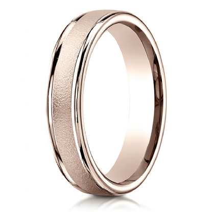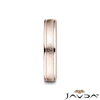 This handsome comfort fit wedding band features a wire brushed finished along the center and a high polished round edges. The stunning ring is crafted with 14k Rose Gold and it is comfortable to wear, measures 4mm wide. This stylish and classic quality gold wedding ring for men's is long lasting. Available in white gold, yellow gold and rose gold.