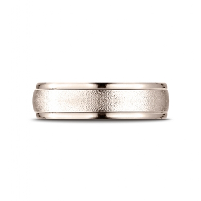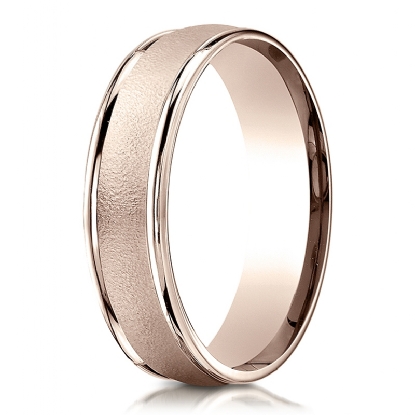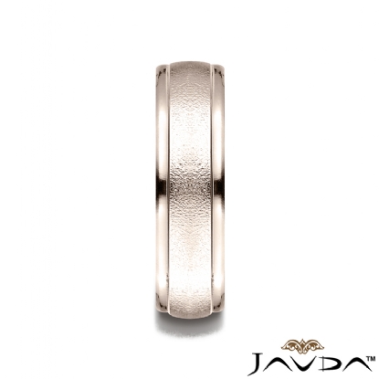 This stylish comfort fit handsome wedding band features a wire brushed finished along the center with high polished round edges. The stunning ring is made from quality 14k Rose Gold and it is comfortable to wear everyday, measures 6mm wide. This classic gold wedding ring for men's is long lasting. Available in white gold, yellow gold and rose gold.
