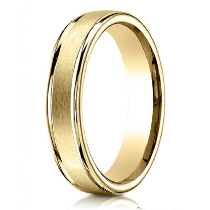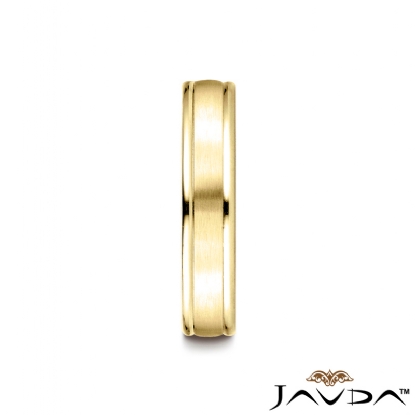 This comfort fit unisex carved wedding band features a satin finished along the center with high polished round edges. The classic simple 4mm width wedding ring is made from quality 14k Gold Yellow and it is comfortable to wear everyday. This gold wedding band for men's and women's is long lasting. Available in white gold, yellow gold and rose gold.